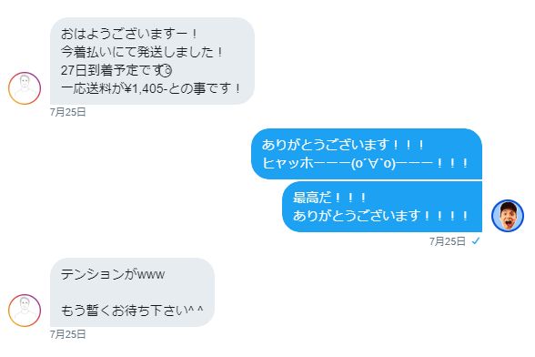 そしたら、その日のうちに「譲りますよ」とのDMがなんと5通(KP氏を含む)。