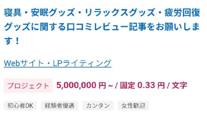 500文字程度でOKなどの軽めの案件もあります。